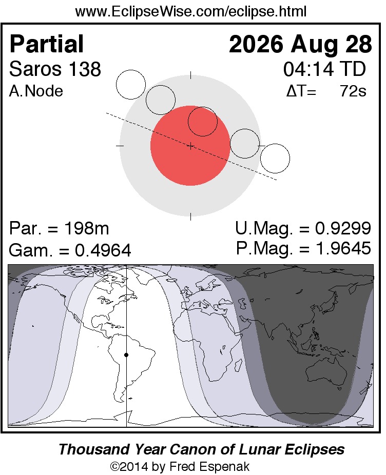 Como los eclipses no vienen solos, este eclipse es precedido dos semanas antes por el Eclipse total de Sol del 12 de agosto y es parte de esta "estación de eclipses".
