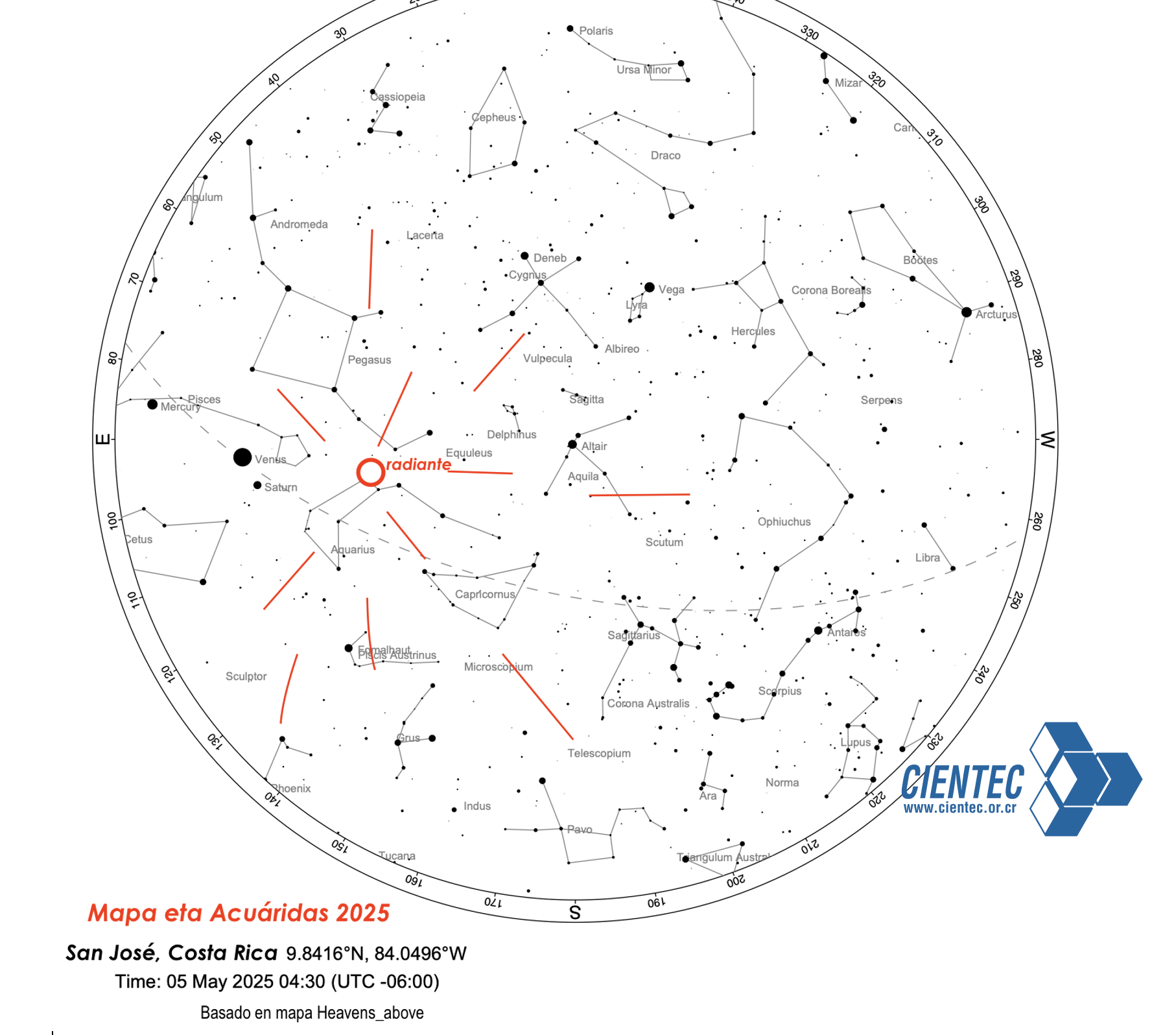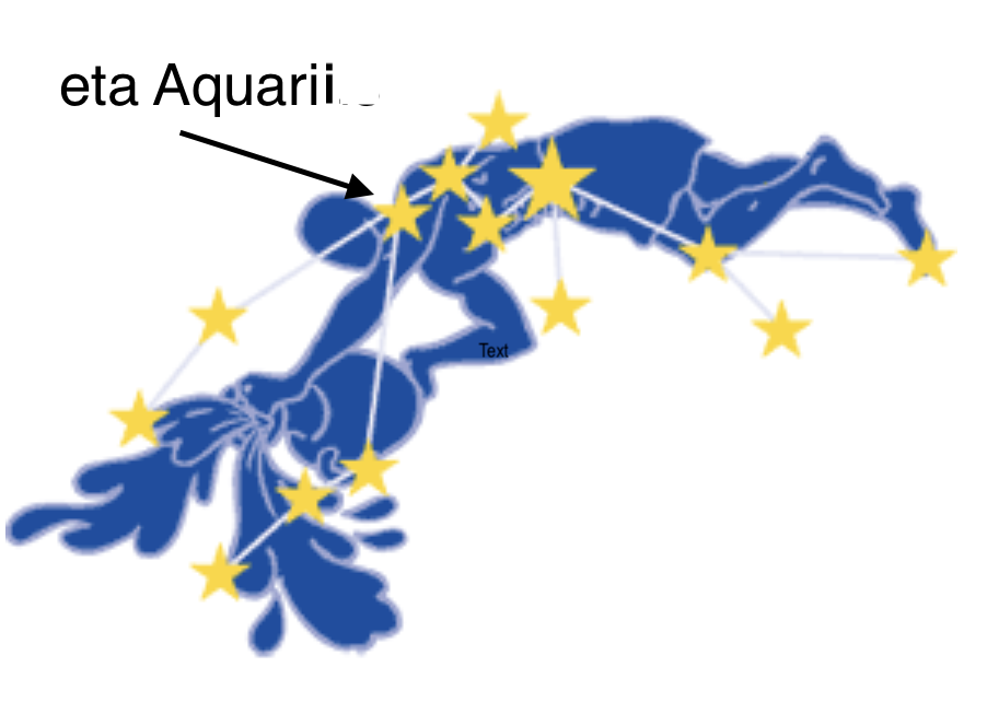 La estrella eta de Acuario, saldrá por el horizonte este cerca de la 1:30 am la madrugada del 5 de mayo. Ya para entonces, la Luna se habrá acostado, aprox a las 00:30 am. Horas más tarde, cerca de las 3 am, también estarán visibles Saturno y Venus al este. Pasadas las 4 am, en el resplandor creciente del amanecer, aparecerá también Mercurio.
