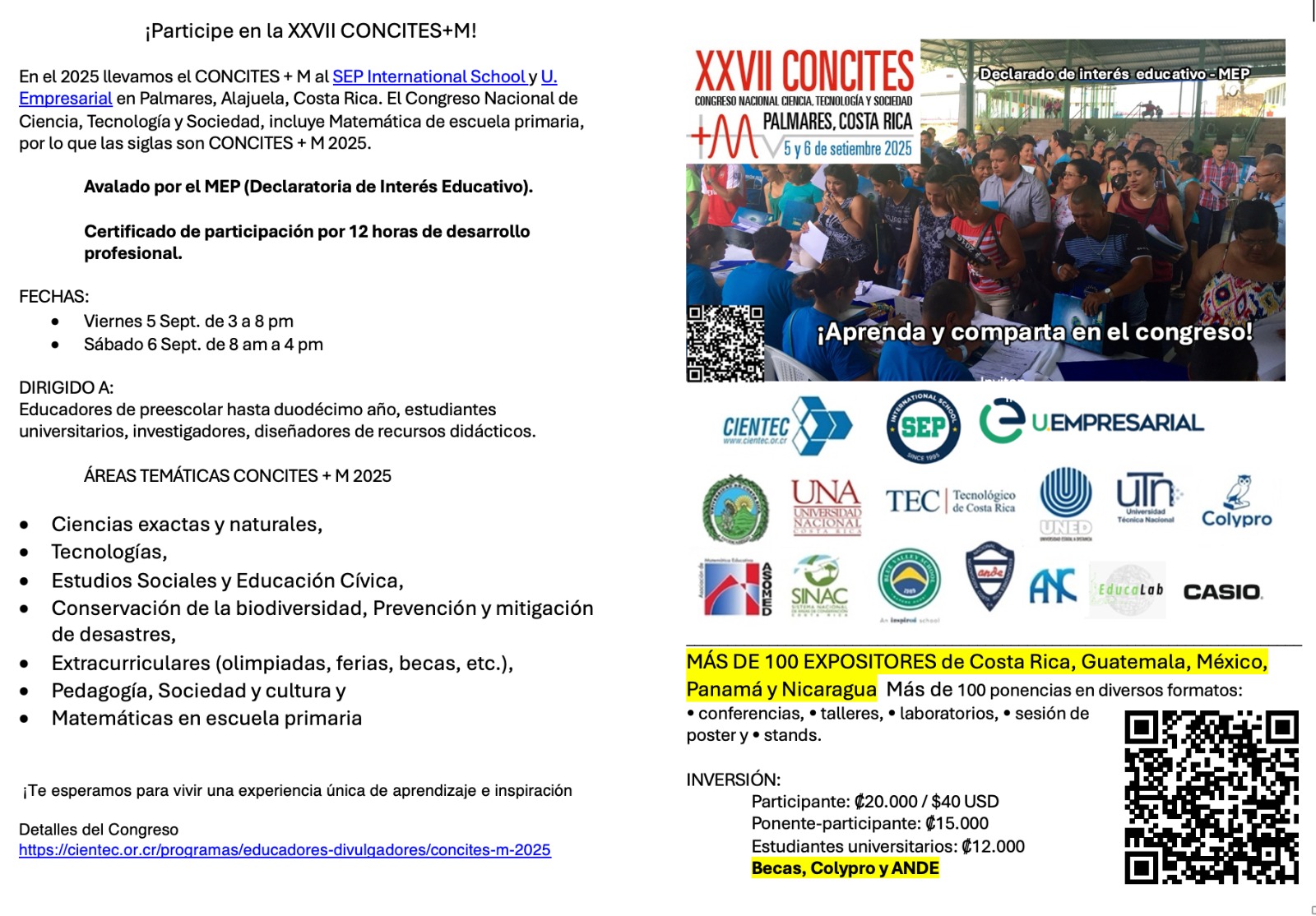 Se acerca el XXVII CONCITES+M que iniciará la tarde del 5 de agosto en el SEP International School en Palmares y aún contamos con algunas becas parciales para educadores y estudiantes universitarios.