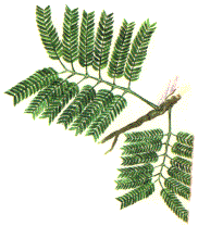 Hojas compuestas, alternas, bipinnadas. Se caen en la época seca.