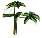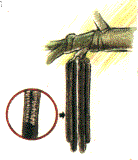 El polen es llevado por el viento desde el árbol macho al árbol hembra. |