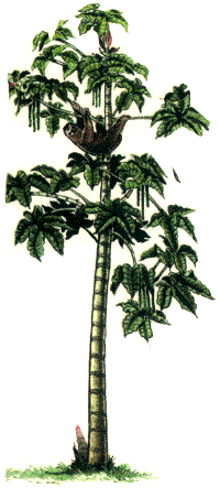 ![]() Los Guarumos son la casa de colonias de hormigas del género Azteca, las cuales son furiosas y protegen al árbol de ser atacado por otros animales. Ellas, a su vez, utilizan el árbol como refugio y se alimentan de una secreción que este produce en la base de las hojas.