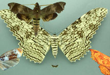 Montaje de imágenes de diferentes especies de mariposas nocturnas mostrando diversidad en tamaño y coloración. Montaje: E. Phillips