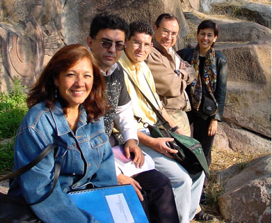 Arqueólogos María de la Luz Moreno y Manuel Torres del Instituto Nacional de Antropología e Historia, guiaron al grupo en la inspección del Aposento. |