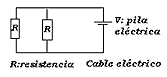 | Circuitos en serie: aquellos en que la misma corriente eléctrica pasa por todos los elementos del circuito. El esquema indica como acomodar esos elementos para que esto ocurra. | Circuito en paralelo: aquellos en que la corriente eléctrica se divide a su paso por el circuito, para alimentar los diferentes elementos que lo componen. |