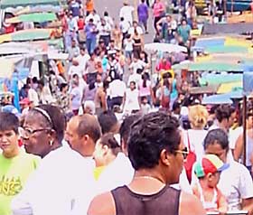 Multitud en la Feria del Agricultor, Pavas, Costa Rica. |