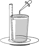 Toma un vaso seco, llenalo de agua casi hasta arriba. Con el gotero añádele tantas gotitas como puedas, sin que se derrame. Verás que el agua llegará más arriba del borde (aprox. 0,25 cms.) y esto se debe a la tensión del agua que mantiene las moléculas unidas.