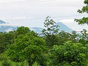 | El esquivo volcán Arenal, humeante, se divisó desde la sede del congreso, el segundo día en la mañana. |
