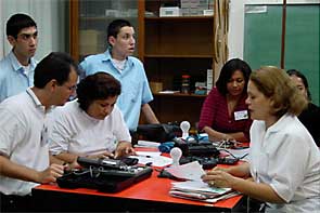 Grupos de trabajo alrededor de calculadoras y sensores, experimentan con tecnología. |
