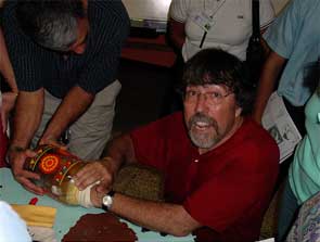 | Modesto Tamez, del Exploratorium de San Francisco, demuestra cómo hacer una nube en un frasco. |