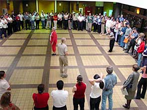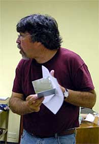 | Con simples espejos el Profesor Modesto Tamez, del Exploratorium de San Francisco, impartió un taller práctico que cautivó a sus participantes en la investigación de ángulos, multiplicación de imágenes, visiones matemáticas y artísticas. |