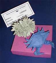 Un erizo y un cangrejo en papel. |