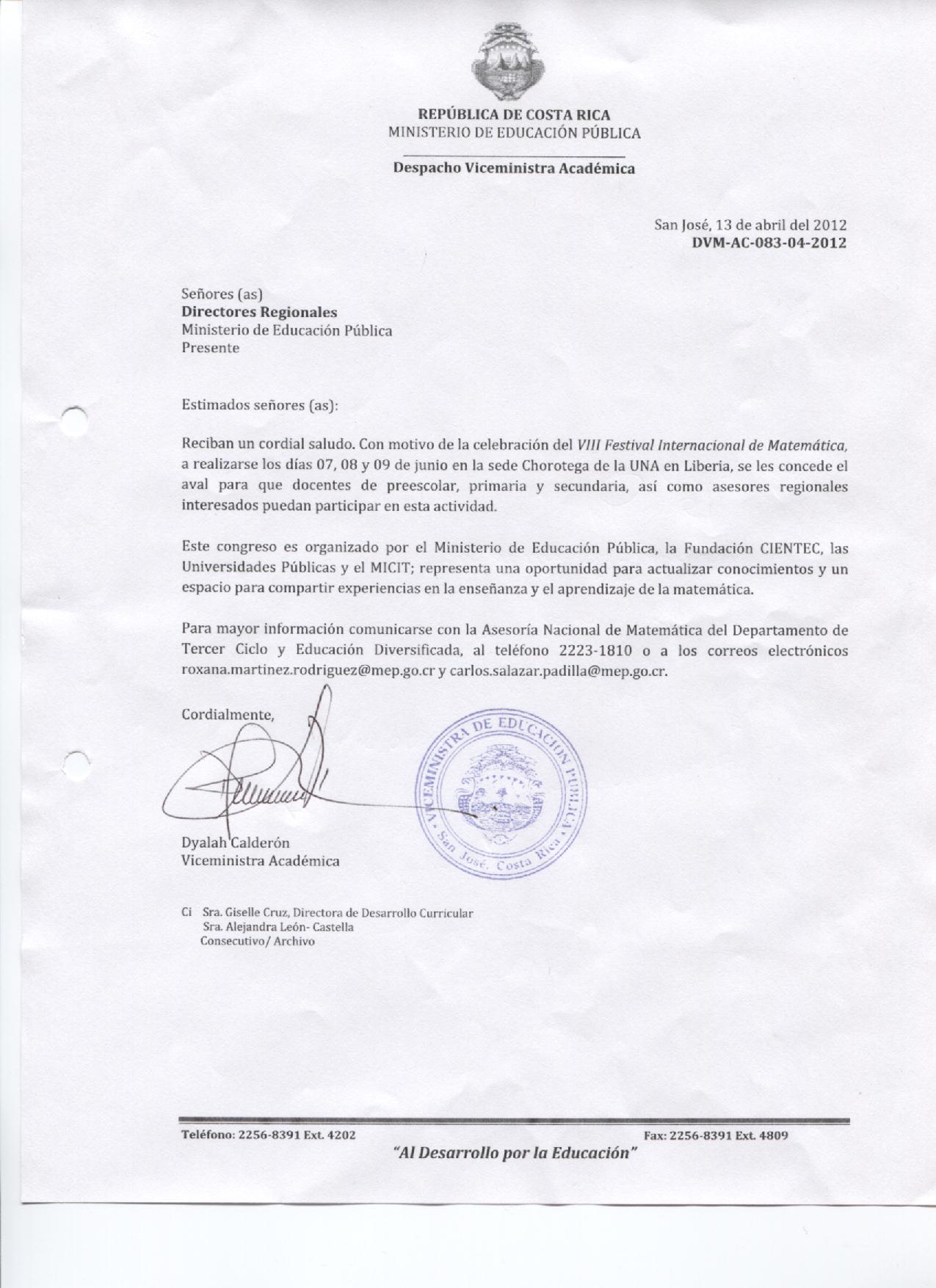- Ministerio de Ciencia y Tecnología, MICIT.