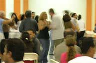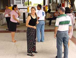 Educadoras tempraneras esperando que se abrieran las puertas el sábado por la mañana.