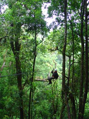 Finalmente, el tiempo mejoró y aún con llovizna, exploramos el bosque lluvioso desde cables a grandes alturas.