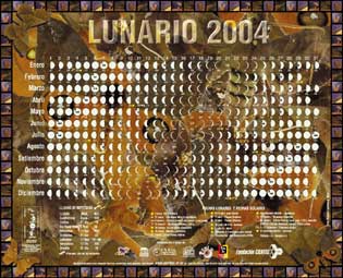 La Fundación CIENTEC y el INBio presentarán el Calendario Lunar 2004 el jueves 9 de octubre a las 10 am, en la Sala Otus, INBioparque, Santo Domingo de Heredia. http://www.inbio.ac.cr Este año el calendario está dedicado a las mariposas nocturnas, debido a las teorías que las relacionan con la Luna. El fondo del afiche es un collage de mariposas