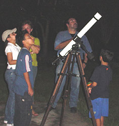 Allí estuvimos observando las estrellas más prominentes y señalándolas a jóvenes y adultos interesados: El "triángulo del verano" formado por Deneb en Cisne, Altair en Aguila y Vega en Lira fue fácil de observar temprano en la noche. Luego llamó la atención el gran cuadrado vacío de Pegasus. Marte permaneció brillante y estando la Luna en "velos", fue este uno de los objetos de observación con instrumentos.