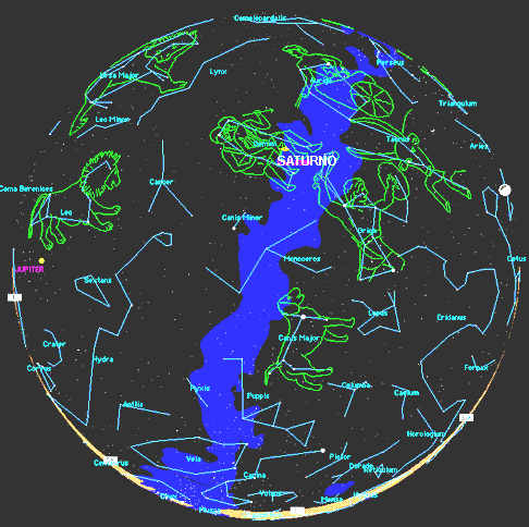 Este planisferio muestra a Leo saliendo al este,