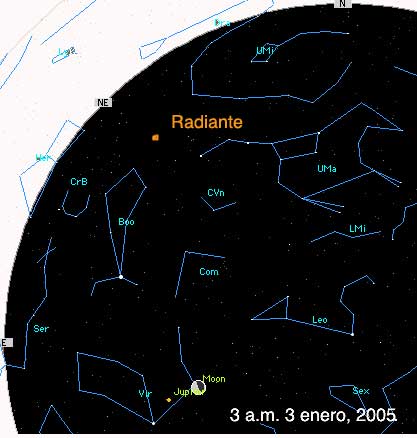 A las 3 a.m. la radiante de la lluvia de meteoros Cuadrántidas