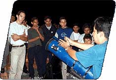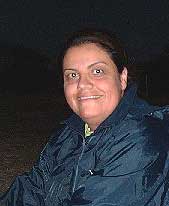 Alejandra León-Castellá también de CIENTEC. Soy la "apuntadora". Me encanta observar a simple vista y los nuevos punteros láser verde me ayudan a compartir conocimentos y guiar a la gente. Aquí estoy (en rojo)con un grupo de estudiantes del Liceo de Belén, enseñándoles a identificar grupos de constelaciones y objetos interesantes en ellas. Soy aprendiz... permanente. Desarrollo materiales astronómicos desde hace más de 12 años. Espero crecer en el uso de binoculares en este viaje.