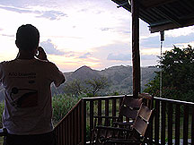 Ronald Arias de CIENTEC, no pierde ninguna oportunidad de observar. Si no son las estrellas, pueden ser lo venados cola blanca dentro del bosque seco. Aquí, en un viaje a Monteverde, usa sus binóculos para buscar a Mercurio en el ocaso. Aficionado a la astronomía desde niño, lleva su telescopio de 5" y comparte sus conocimientos siempre que puede. Es naturalista, miembro de la Asociación de Voluntarios de Parques Nacionales, ASVO, a quienes contagia con su alegría y pasión por los cielos.