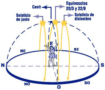 latitud 8° hasta pasados los 11° en el norte). El Sol cenital en