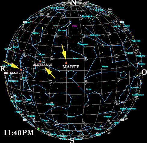 para identificar a Marte alto en el cielo como a media noche. Lo podrá