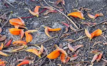 Flores caídas del poró "extranjero", enero, La Sabana. |