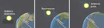 Diagrama de la posición del Sol respecto del ecuador terrestre en estos fenómenos.