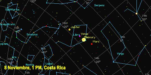 Eso, bajo el mejor de los cielos.Tiempos del Tránsito para Costa Rica (T.U. - 6 horas)