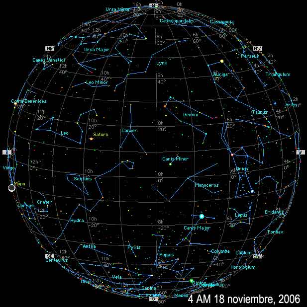 Mapa del cielo sobre Costa Rica, del 18 de noviembre a las 4 am. Cambia levemente para la noche siguiente.