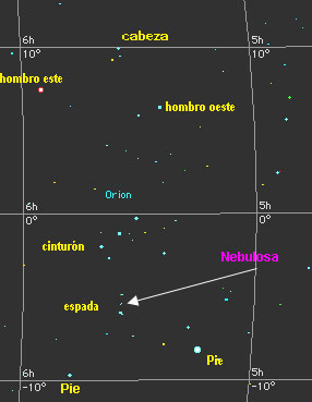 Encontrará a Orión en el centro del mapa, o sea muy arriba