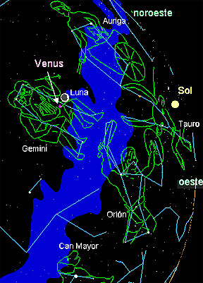 Si no lo vio hoy sábado, puedo observarlo en las siguientes noches. Pero cada noche la Luna y Venus estarán más distantes, hasta que se junten de nuevo el 18 de junio. |