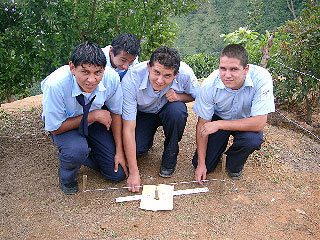 Con motivo del solsticio de verano, los estudiantes del Liceo Llano Bonito de León Cortés prepararon un experimento para observar el ángulo que forma la sombra de una estaca vertical con respecto al la línea este-oeste. Por cierto que hubo problemas porque las nubes se presentaron muy temprano. Todo surgió por un comentario hecho, durante un recreo, el día anterior al solsticio, y les resultó interesante porque lo habían mencionado alguna vez en sus lecciones de Estudios Sociales. Ahora tienen la motivación para investigar teóricamente la fecha en que los rayos solares caerán perpendiculares sobre el sitio donde se encuentro nuestro liceo, y pretenden hacer diferentes experimentos para corroborarlo en la fecha que ocurra. Prof. Bonilla Carvajal. |