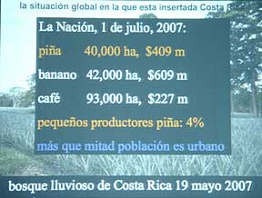 Costa Rica tiene el 4% de especies del mundo, el mismo número que la gran región comprendida por los Estados Unidos de América y Canadá juntos. En el país se encuentran 4 de los 5 ecosistemas del mundo (sólo falta el desértico) y un 25% del país está protegido. A pesar de ello, al igual que en el resto del mundo, la mayoría de las áreas protegidas están en malos suelos, muchas en altas elevaciones y en fragmentos de terreno, desconectadas entre sí. Además, insistió, también hay muchas especies muertas en vida. Que siguen viviendo, aisladamente, en grandes potreros o planicies, sin posibilidad de reproducirse. El país se ha movido de una primera fase de protección, al manejo de la vida silvestre, una segunda fase de conservación. |