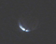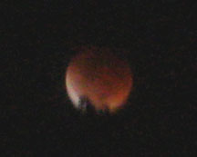 En la Totalidad, la Luna se tornó cobriza y pudo observarse hasta que se escondió bajo el horizonte. Aquí ya se interpusieron en la base algunos árboles.