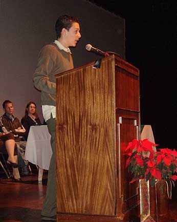 Felipe Mora del Colegio Bilingüe San Francisco de Pococí, Limón, presenta el ensayo con el que ganó el segundo lugar de la categoría menor. |