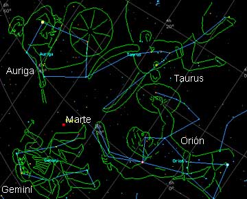 A las 7 de la noche, ya totalmente oscuro, Marte había salido