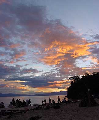 Vista de Puntarenas desde Isla Tortuga, al amanecer en viaje de CIENTEC del 2002. |