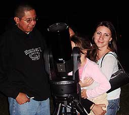 Familia observando la Luna, en preparación al eclipse. |
