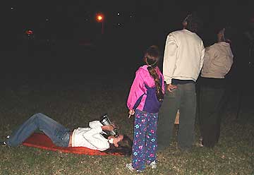 Participantes de la sesión en el Polideportivo Aranjuez, observando la Lun con guía.