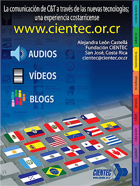 PARTICIPACION DE CIENTEC La Fundación CIENTEC participó con la presentación de su experiencia desde Costa Rica, comunicando la ciencia y la tecnología a través de su sitio web en la Internet, los alcances obtenidos en la visita -uso de los recursos generados- y la diversificación de los últimos años, para generar materiales educativos y de divulgación en diferentes formatos y medios (páginas web, documentos para descargar, blogs, podcasts -mp3- y vídeos.) |