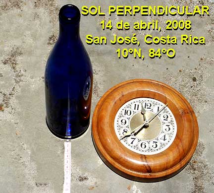 HOY 14 DE ABRIL 2008 documentamos el sol cenital.El fenómeno seguirá en latitudes superiores, hasta salir el 18 de abril del territorio costarricense.