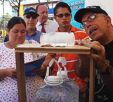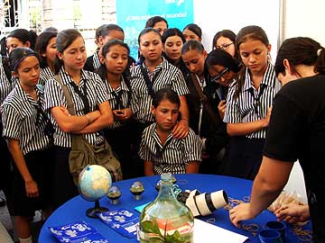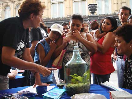 Gracias a alianzas con el Ministerio de Ciencia y Tecnología, la EstrategiaNacional de Cambio Climático, la Municipalidad de San José y el apoyo de especialistas colaboradores y dos jóvenes voluntarios del Colegio Humboldt, CIENTEC realizó un despliegue de demostraciones, experimentos y hasta un taller dentro de la Feria del Año Intl. del Planeta Tierra, 2008, en la Plaza de la Cultura, ayer 22 de abril.