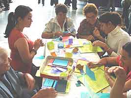 El programa del Festival se inició la noche del Jueves 29 de mayo a las 6 p.m. con discursos de inauguración, una obra teatral de geometría dirigida por Karl Schaffer, quien había trabajado dos días con un grupo de jóvenes del Colegio San Agustín para prepararla. Luego siguió un concierto de marimbas de otro colegio de la región y una mesa redonda titulada Aprender matemática a toda costa, en la que se expusieron diferentes estrategias de apoyo, dentro y fuera del país. |