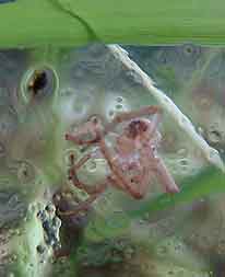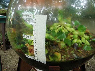 La piel de una araña detrás del cristal, es otra evidencia de la vida que albergan las biosferas. |