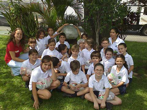 Grupos de escolares visitan la planta y se recrean en este jardín.
