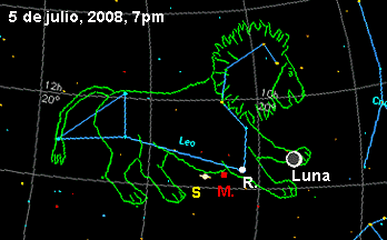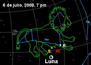 pasando por Marte, luego Régulus y terminando al oeste con el cachito