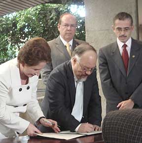 Ing. J. M. Dengo recibe el anuncio. |