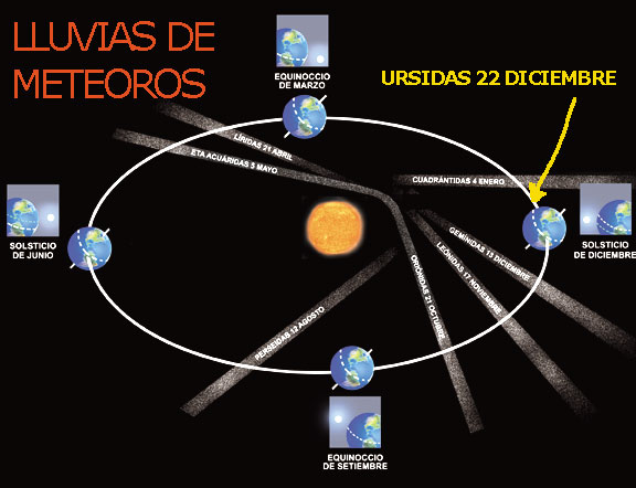 Las Lluvias de meteoros son chorros de partículas que dejó atrás un cometa o un asteroide en su paso cercano al Sol, chorro que la Tierra encuentra o cruza, en su travesía cada año, de manera periódica. La fuerza gravitacional atrae las diminutas partículas que al entrar en la atmósfera terrestre, con el rozamiento, se incendian.Existe toda una comunidad de observadores, tanto de las lluvias mayores, como de las menores, que reporta la observación directa de estos fenómenos para llevar datos globales del encuentro. Esta colaboración de aficionados y especialistas permite generar los datos y llevar estadísticas para afinar la proyección futura.